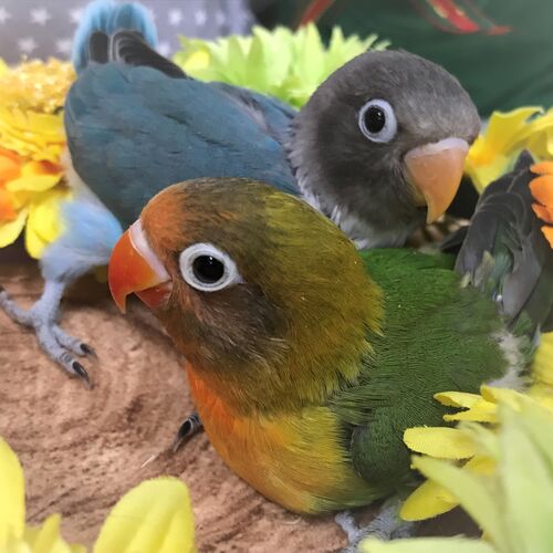 こんにちは! 小動物スタッフの中川です☆ 本日も当店に来てくれました子たちをご紹介いたします! まずはボタンインコのヒナちゃんたちです! ルリコシとブルーの二色が来てくれました! すでに仲良しの二羽は一羽が行く場所にもう一羽がついていく姿はカル…